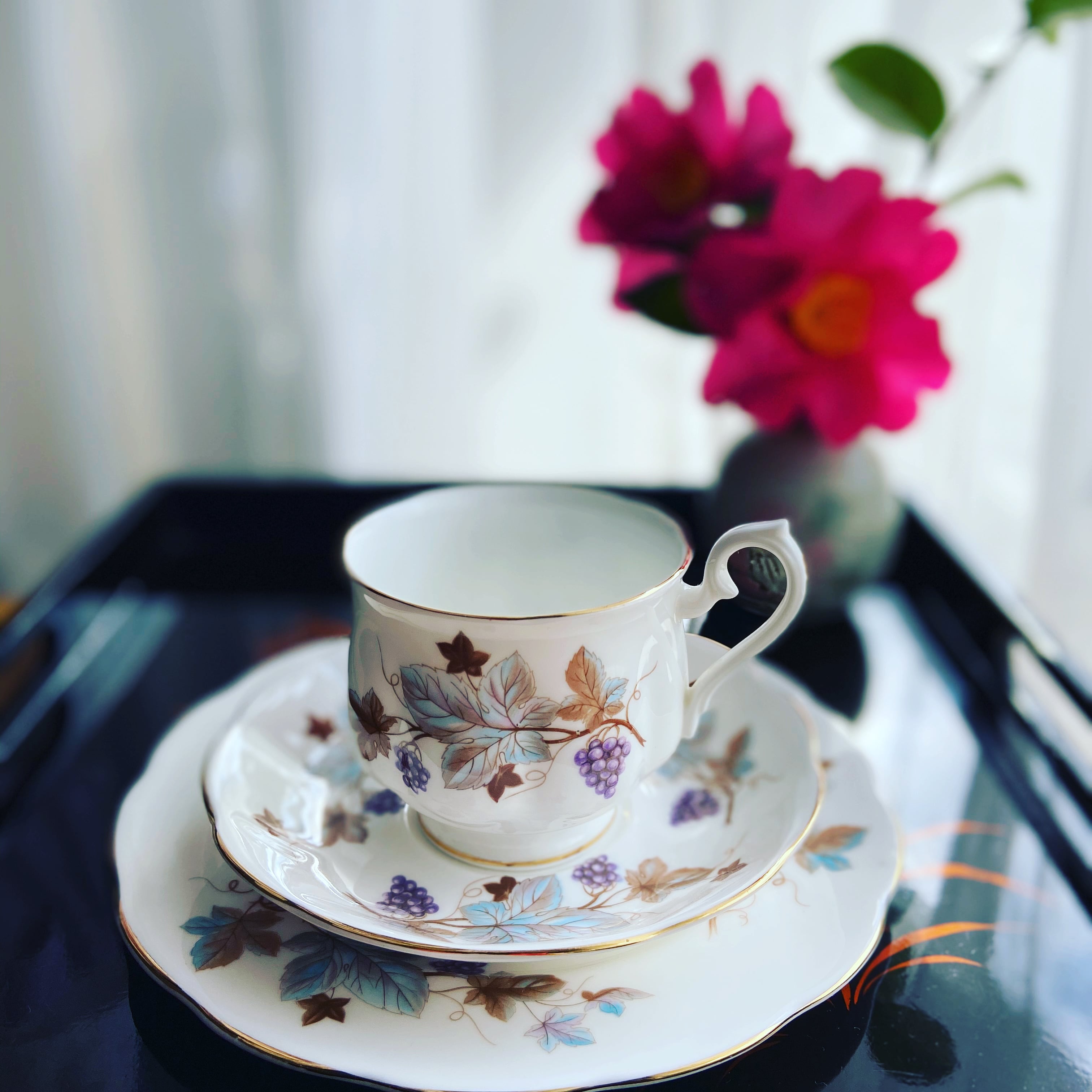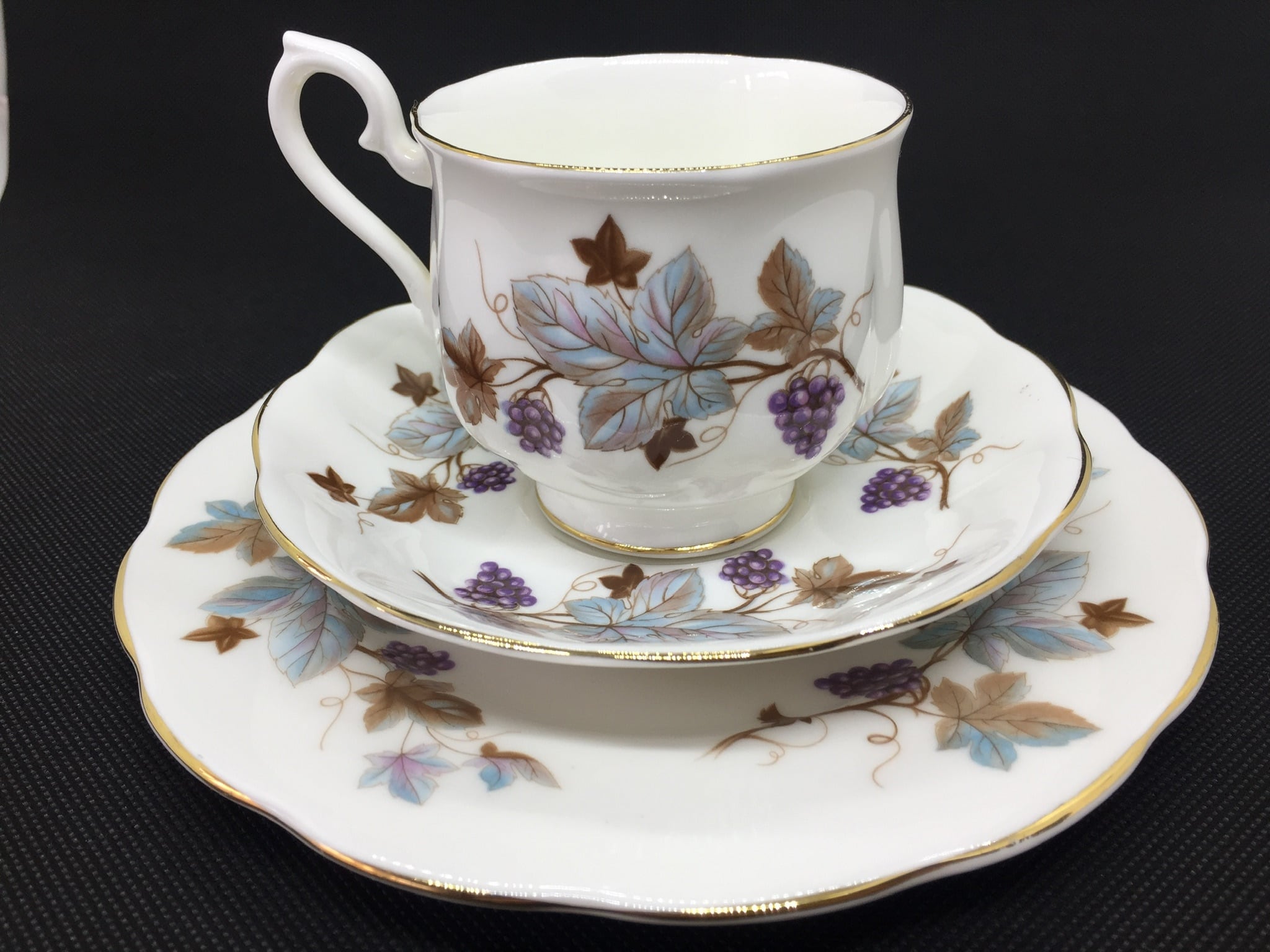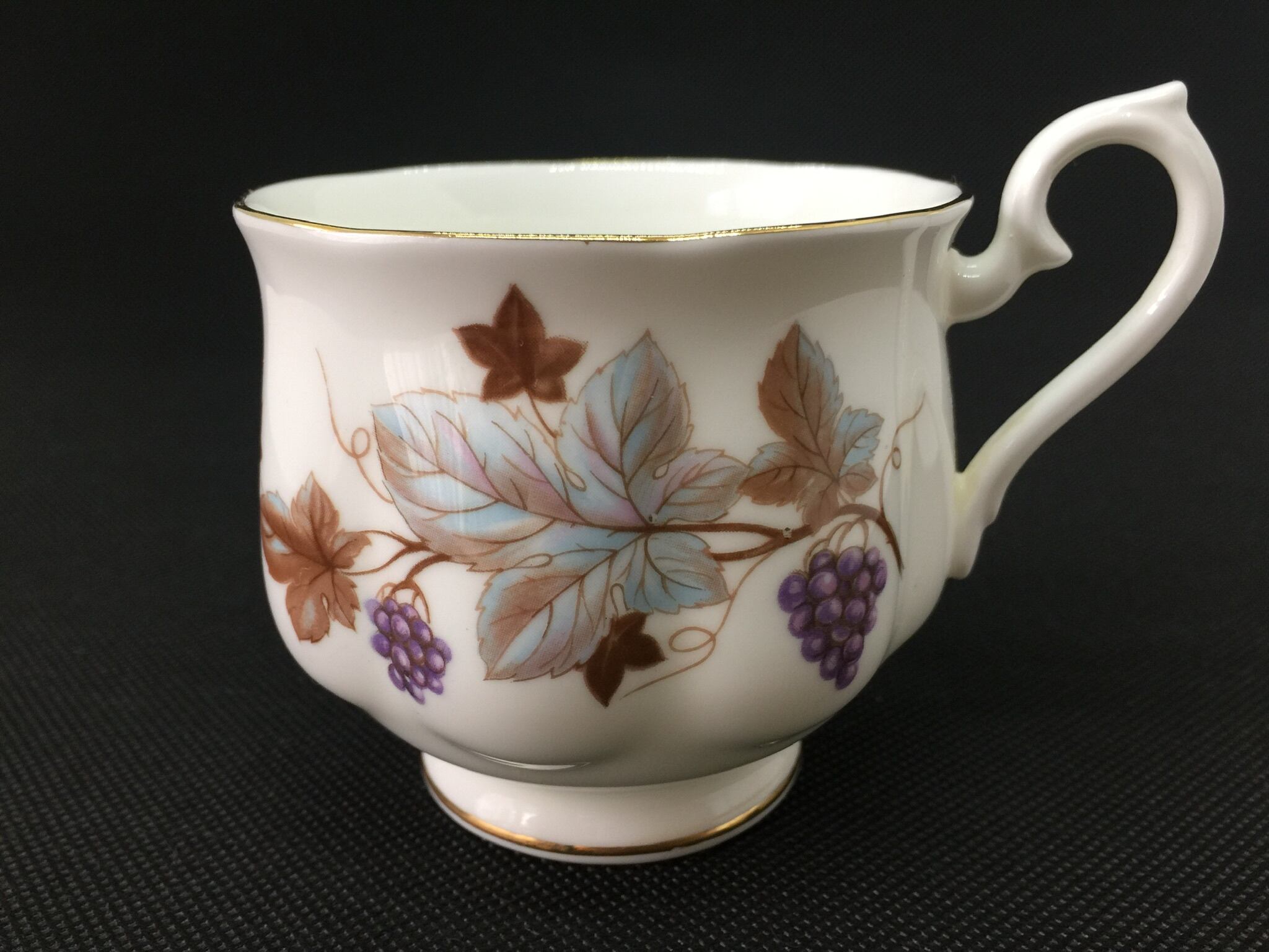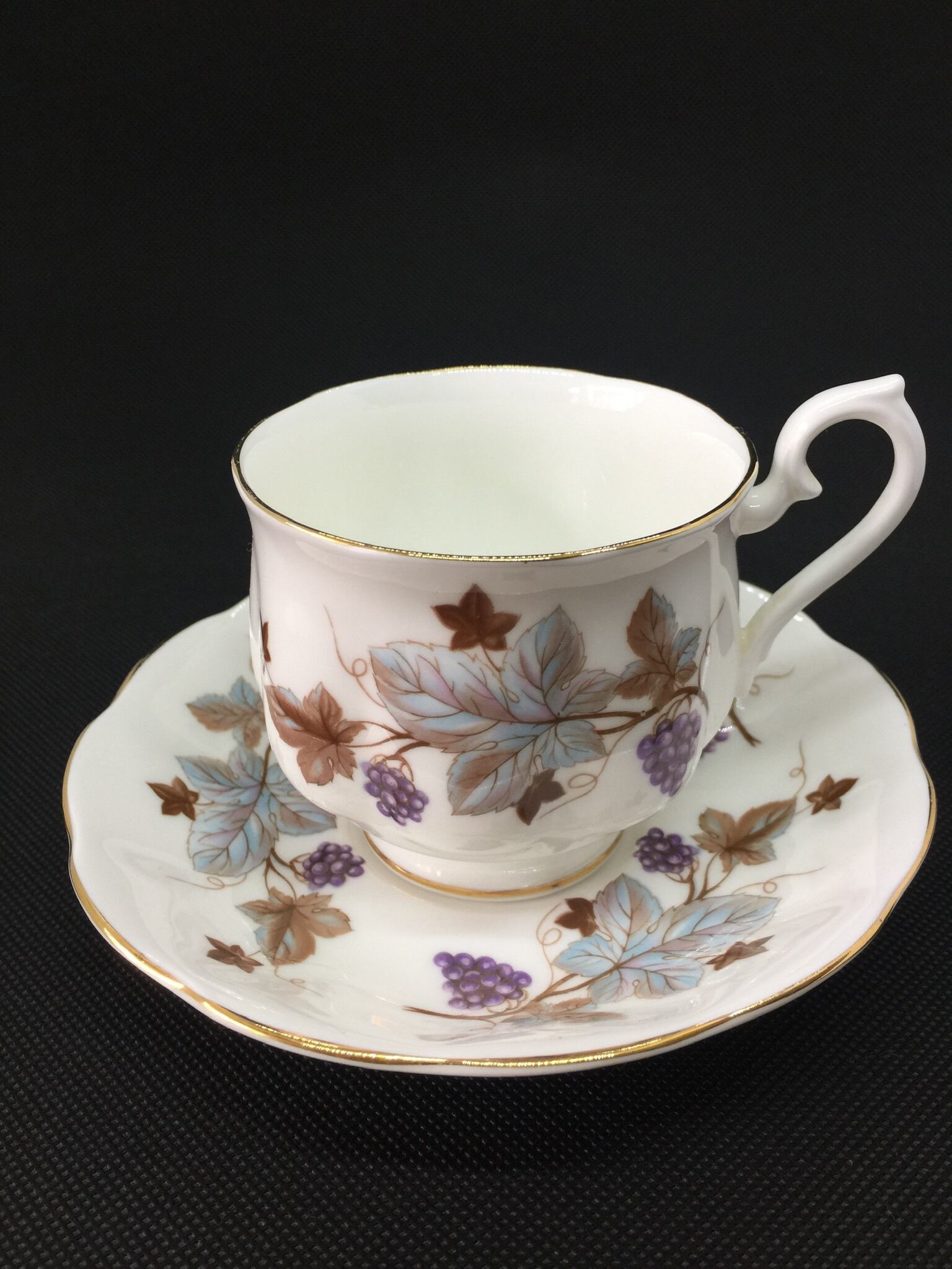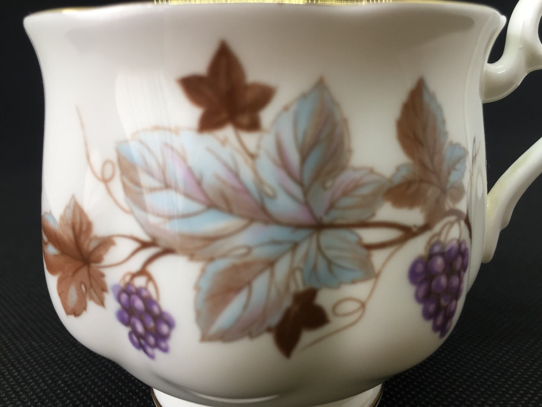その中でも今回のお品はロイヤルアルバートとしては珍しく、落ち着いた葡萄の模様になります。