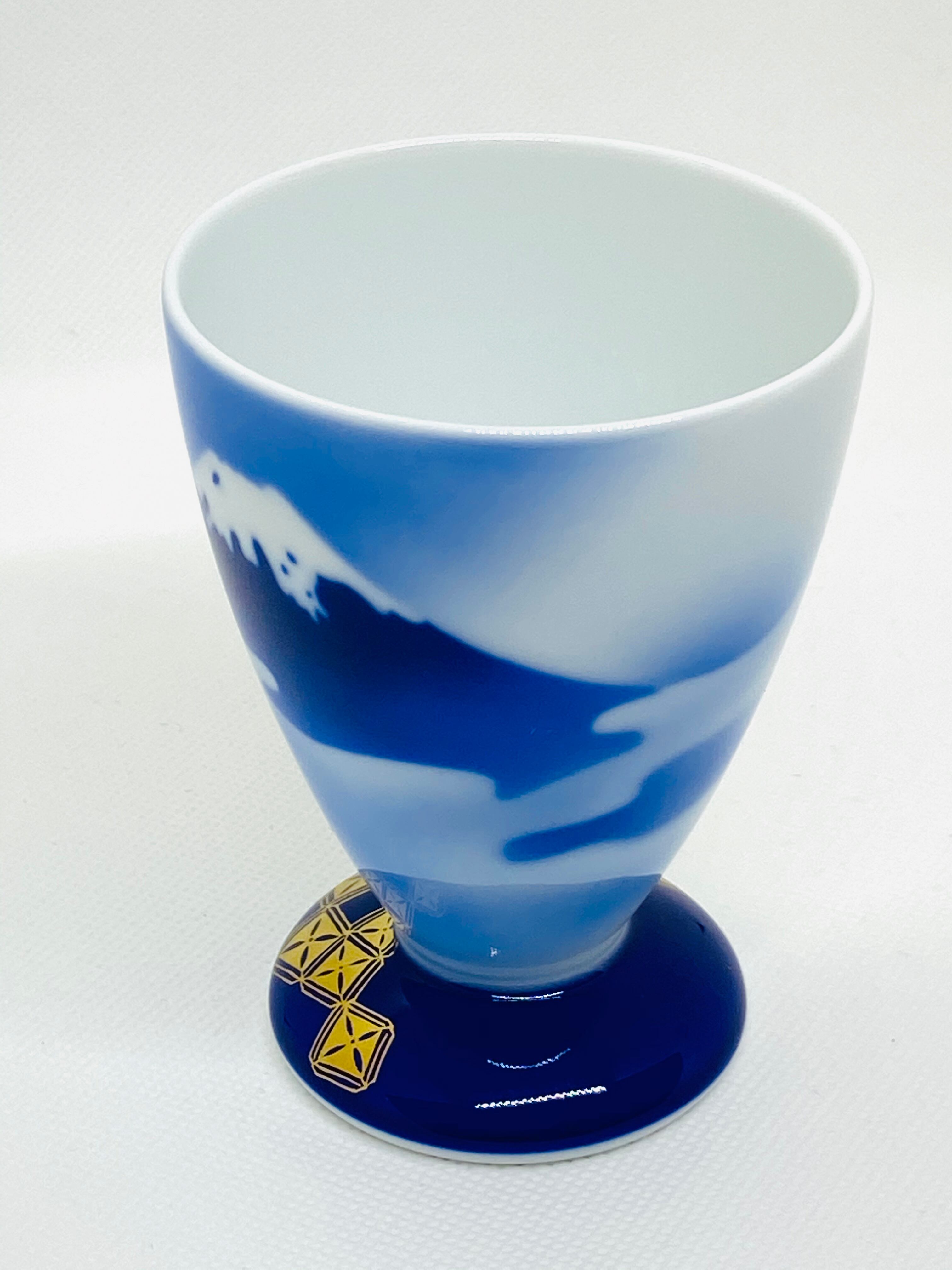 吉祥の象徴とし、日本独自のデザインとして深川製磁が製作し続けて来ました、世界遺産富士山のデザインのゴブレットになります。