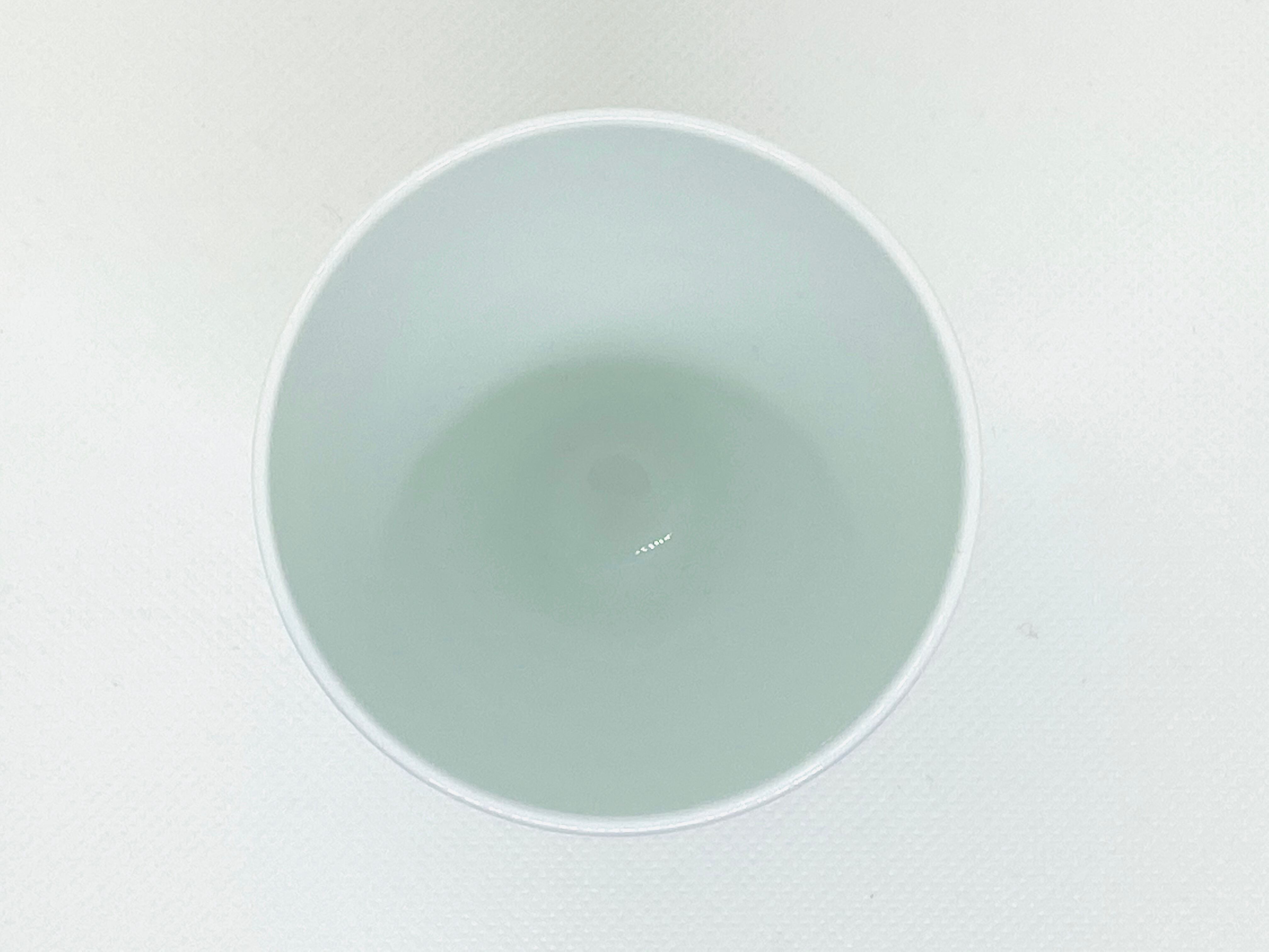 艶のある磁器で硬くしっかり作られ、飲み口は程よい厚みがあり口当たりも良さそうです。下へ行くほど厚みがあり、高台は直径5.5センチあるので倒れにくく作られています。